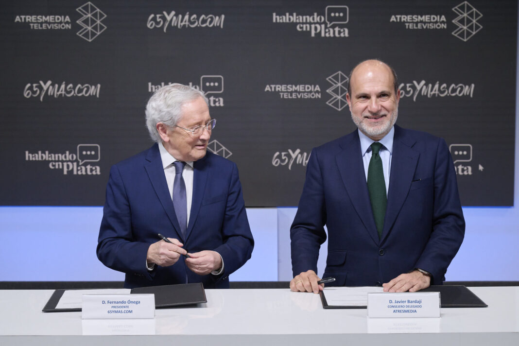 Atresmedia y el diario digital ‘65YMÁS’, especializado en el público sénior, han alcanzado un acuerdo de colaboración para unir esfuerzos en su objetivo común de amplificar el compromiso de poner en valor a las personas mayores y visibilizar las dificultades a las que se enfrentan. Esta mañana, el consejero delegado de Atresmedia, Javier Bardají, y el presidente de ‘65YMÁS’, Fernando Ónega, firmaron esta alianza en la sede de la compañía audiovisual.