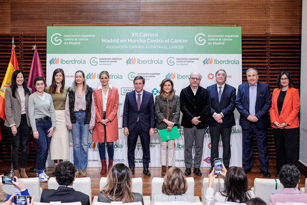 El alcalde de Madrid, José Luis Martínez-Almeida, llevó a cabo esta mañana la presentación de la XII edición de la Carrera Madrid en Marcha Contra el Cáncer. En el evento, el edil estuvo acompañado por el delegado de Políticas Sociales, Familias e Igualdad, José Fernández; la concejala delegada de Deporte, Sonia Cea; y los concejales de Chamartín y Chamberí, Yolanda Estrada y Jaime González Taboada, respectivamente. La carrera, organizada por la Asociación Española Contra el Cáncer (AECC), se celebrará el próximo domingo 30 de marzo, y espera reunir a miles de participantes en el emblemático paseo de la Castellana.