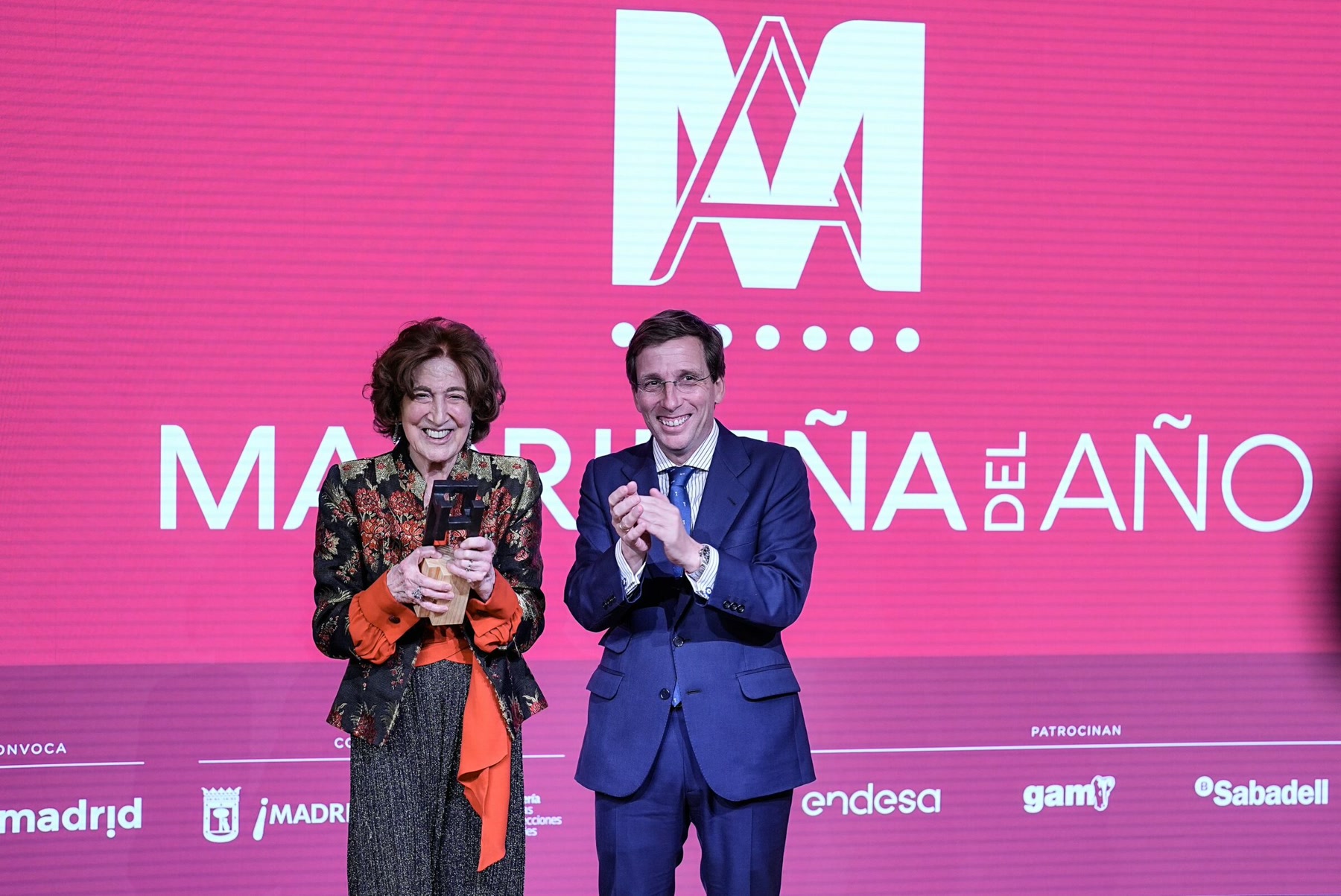 El premio ‘Madrileño del Año’, una escultura obra de Amador Rodríguez, tiene como objetivo el reconocimiento a personas que destacan por su contribución al desarrollo económico, social o cultural de la ciudad, así como por su compromiso con causas que favorezcan el progreso de la sociedad madrileña en su conjunto. En ediciones anteriores lo han recibido el doctor Juan Abarca Cidón, Mario Vargas Llosa y Gregorio Marañón y Bertrán de Lis.