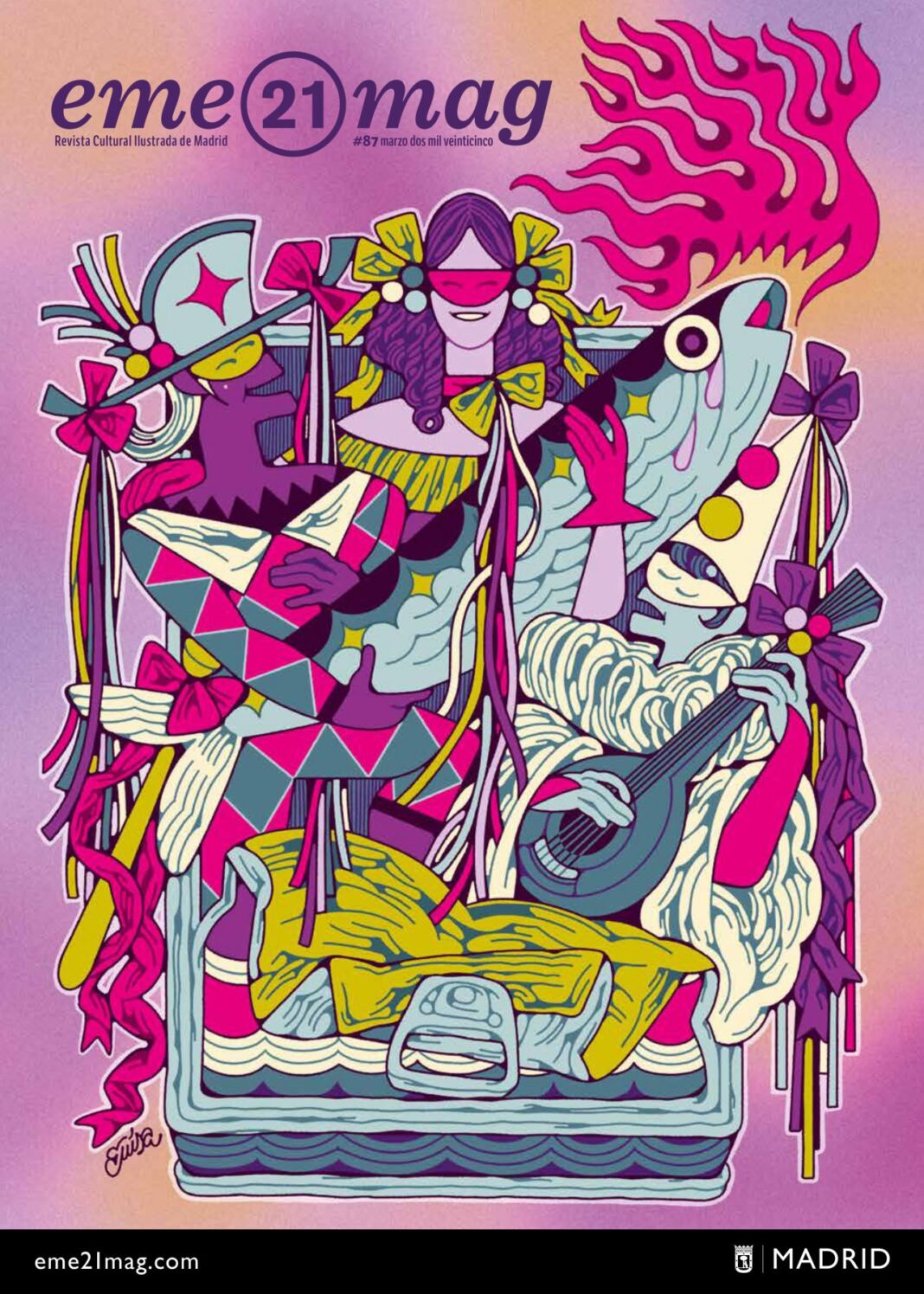 Marzo trae consigo el carnaval y la revista ilustrada eme21mag, del Área de Cultura, Turismo y Deporte del Ayuntamiento de Madrid, dedica una significativa parte de su contenido a estas festividades. La portada, diseñada por la ilustradora Guisa, representa el tradicional entierro de la sardina y celebra los personajes de la Comedia del Arte. La contraportada, a su vez, exhibe el cartel del carnaval madrileño de 2025, creado por el ilustrador Abraham Menéndez.