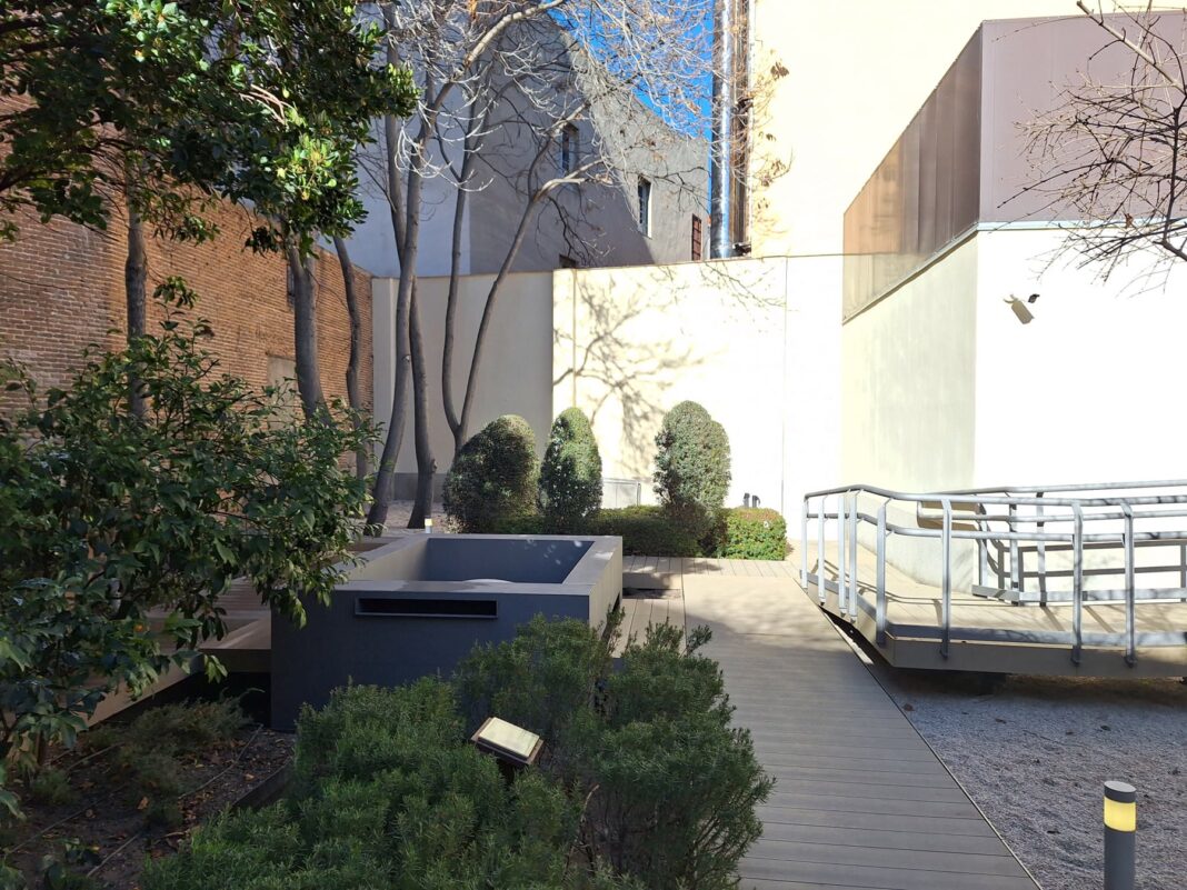 Este punto emblemático del museo, situado junto al ábside de la Capilla del Obispo, cuenta con un recorrido sobre pasarelas de madera que, debido a su exposición a la intemperie, había sufrido un deterioro por la acción de los agentes meteorológicos, lo que obligó al cierre del espacio para evitar riesgos de caídas. Además, la falta de impermeabilización del estanque interior había provocado humedades en la planta sótano.