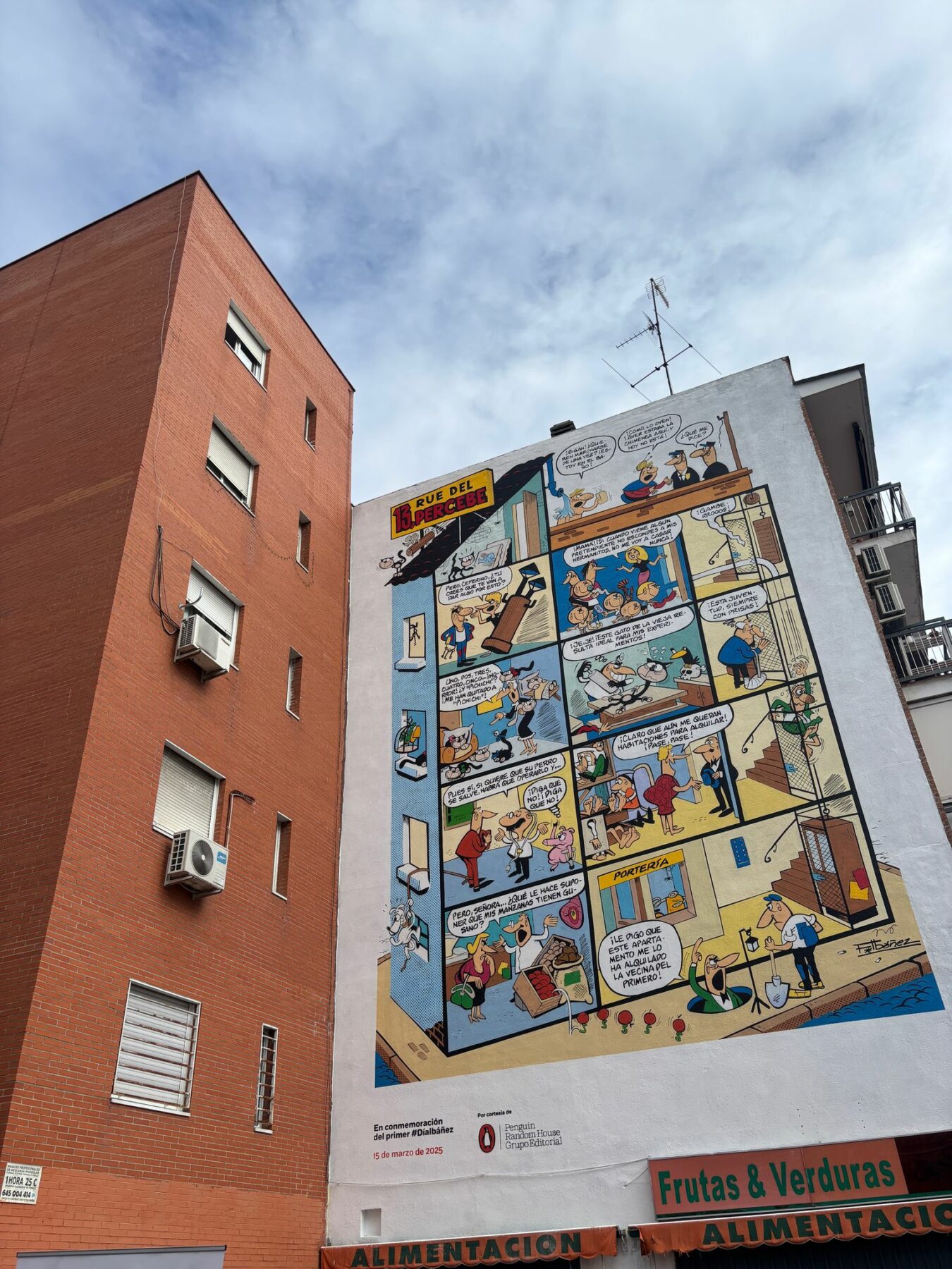 El mural, realizado por los artistas NSN997 y Kerudekolorz, se inspira en el arte urbano de las décadas de los 80 y 90. En la misma ubicación, el próximo 15 de marzo, que coincide con el cumpleaños de Ibáñez, se organizarán actividades para lectores y para que los niños puedan familiarizarse con la obra del autor.