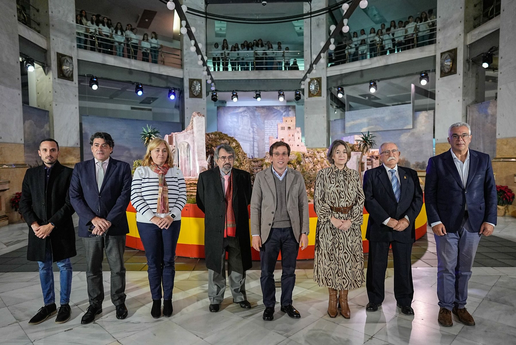 El alcalde de Madrid, José Luis Martínez-Almeida, junto a la vicealcaldesa y delegada de Seguridad y Emergencias Inma Sanz, y la delegada de Cultura, Turismo y Deporte, Marta Rivera de la Cruz, inauguraron la temporada navideña con la apertura del tradicional belén municipal en el Patio de Operaciones de CentroCentro, en el Palacio de Cibeles. Un nacimiento que podría visitarse hasta el 5 de enero y que está compuesto por 278 figuras únicas modeladas por el artista José Luis Mayo Lebrija. Diseñada por la Asociación de Belenistas de Madrid, la instalación, de estilo hebreo tradicional, marca el inicio de las celebraciones de las fiestas más entrañables del año.