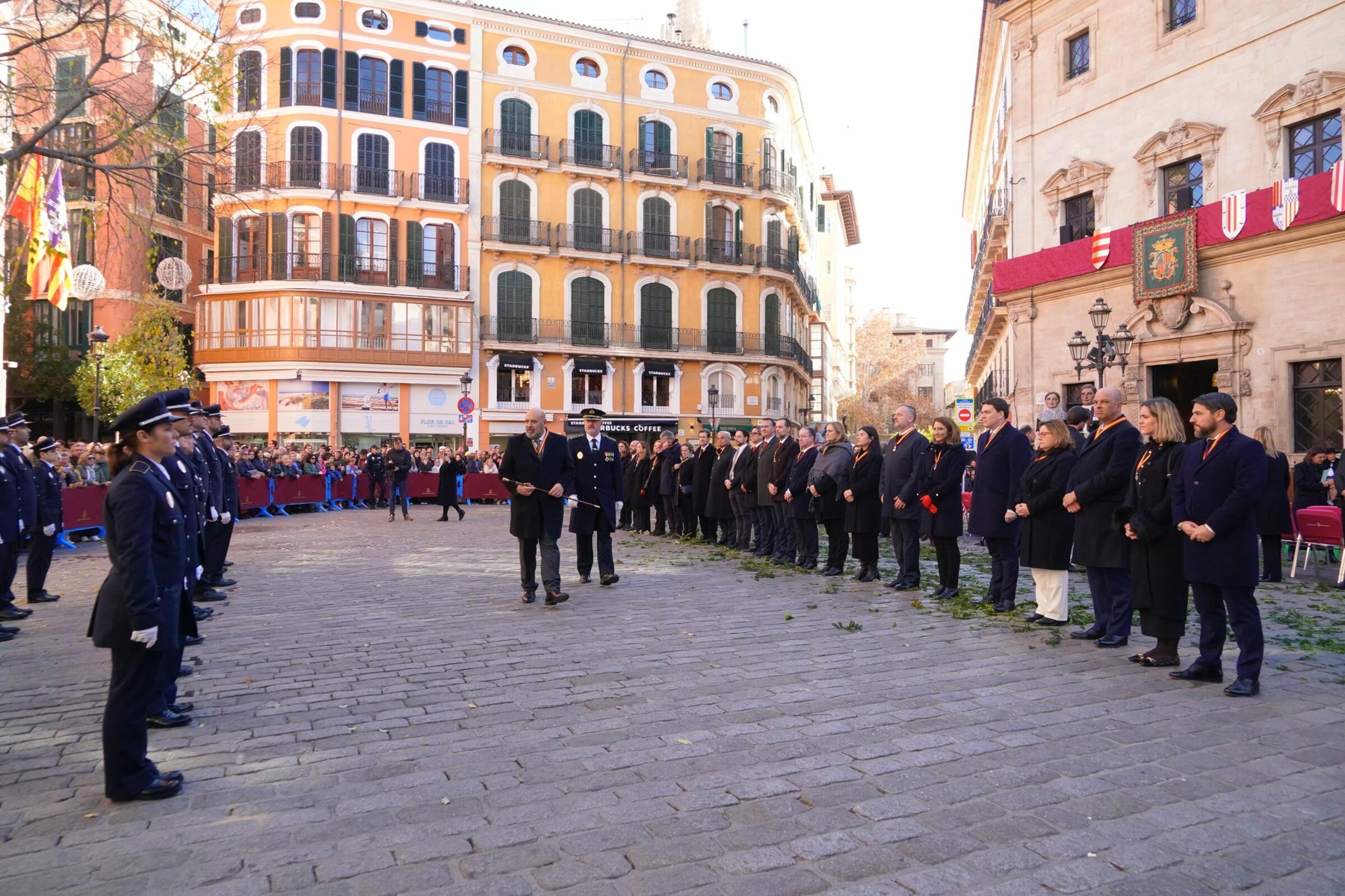 El primer regidor de Cort destaca unos presupuestos históricos para 2025 por su apuesta inequívoca para convertir Palma en un territorio de referencia. El alcalde de Palma, Jaime Martínez Llabrés, ha puesto en valor el proyecto de ciudad del actual equipo de gobierno municipal, con una hoja de ruta marcada por la seguridad ciudadana, la limpieza, la movilidad, el medio ambiente, la vivienda, la excelencia cultural y los proyectos transformadores de Palma. Así lo ha expuesto durante el discurso que pronunció en la plaça de Cort, en el marco de la Festa de l’Estendard, que conmemora la llegada de las tropas del Rei en Jaume a Madina Mayurqa.