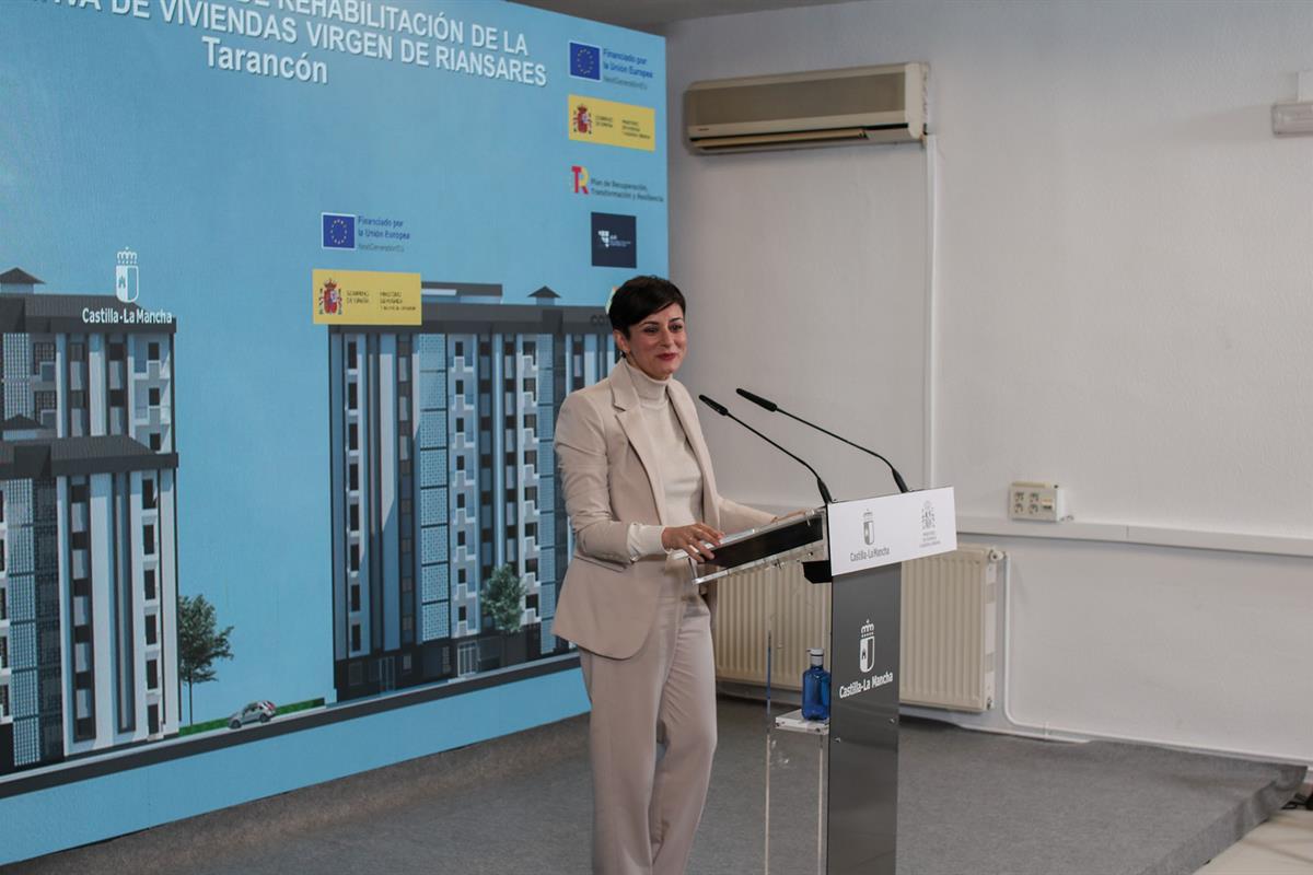 «Este cambio en las viviendas de 300 familias de Tarancón simboliza la apuesta por la calidad y la dignidad de la vivienda», afirmó Rodríguez, quien estuvo acompañada por el presidente de la Junta de Comunidades de Castilla-La Mancha, Emiliano García-Page, la delegada del Gobierno en Castilla-La Mancha, Milagros Tolón, y el alcalde de Tarancón, José López Carrizo.