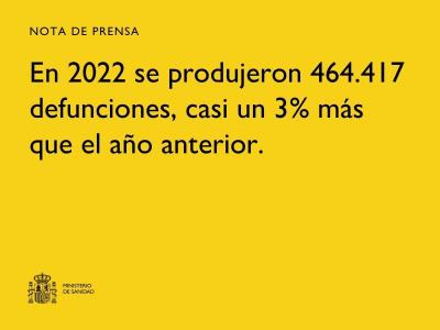 .- En 2022 se produjeron 464.417 defunciones, 13.373 defunciones más que en 2021 y 29.359 menos que en 2020, el primer año de la pandemia de COVID-19.