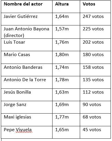 La encuesta arrojó resultados interesantes, como que muchos de los actores más votados ya superan la estatura media de los españoles, pero aun así estarían encantados de ver a sus actores favoritos más altos. Según el presidente de Masaltos.com, Antonio Fagundo, la altura hace a los hombres más elegantes y atractivos, y por eso hasta actores con una estatura considerable, como Mario Casas, son votados en las encuestas.