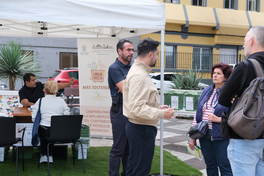 Alemán visitó un stand informativo que estuvo instalado en la plaza del barrio del Distrito Centro, donde se informaría a los vecinos sobre el adecuado uso del contenedor marrón. El concejal expresó: “Seguimos implantando este servicio de forma progresiva en la ciudad. Ya el año anterior se había instalado en una decena de barrios y este año se continuaría en Lomo Apolinario, donde los vecinos ya podían hacer uso del contenedor marrón”.