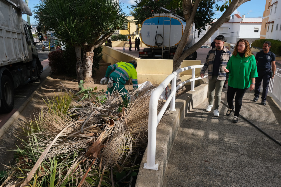 Por su parte, la concejala de Desarrollo Estratégico, Sostenibilidad y Energía, Parques y Sector Primario, Gemma Martínez Soliño, enfatizó que «cuando un barrio necesita atención, es vital trabajar de forma coordinada». En Las Mesas, el servicio de Parques y Jardines movilizó ocho operarios para realizar tareas de limpieza y deshierbado en zonas ajardinadas, así como también dos personas para la poda de arbolado y palmeras. Durante esta actuación, se mejoró la plantación de jardineras con aloes y agaves, plantas suculentas con gran adaptabilidad al ambiente árido.