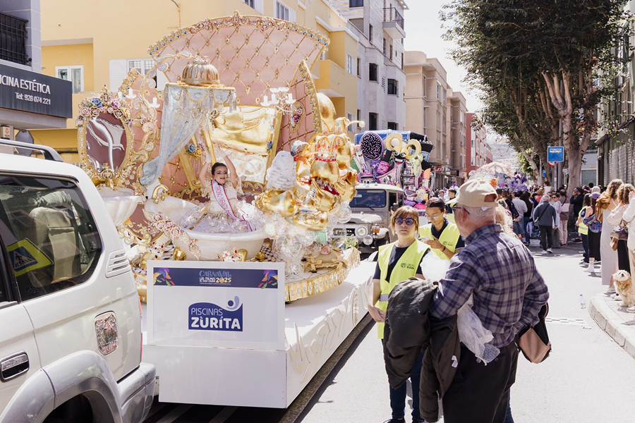 La comitiva estará formada por la reina infantil Ainhoa Zurita Ortega, quien portará la fantasía «Realmente pomposa» diseñada por Santi Castro, así como por otras participantes que representarán creaciones variopintas. La cabalgata contará con la presencia de grupos infantiles, como murgas, comparsas y mascaritas, además de un total de 34 carrozas, las cuales incluirán las de marcas patrocinadoras como Tirma y Munchitos.