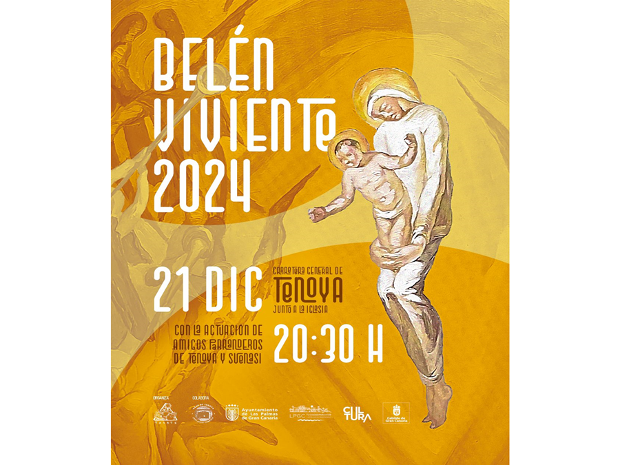 La representación tendrá lugar a partir de las 20:30 horas junto a la iglesia del barrio. El barrio de Tenoya celebrará el Belén Viviente, organizado por la Asociación Cultural Tasate, en colaboración con la Concejalía de Distrito Tamaraceite-San Lorenzo-Tenoya del Ayuntamiento de Las Palmas de Gran Canaria.