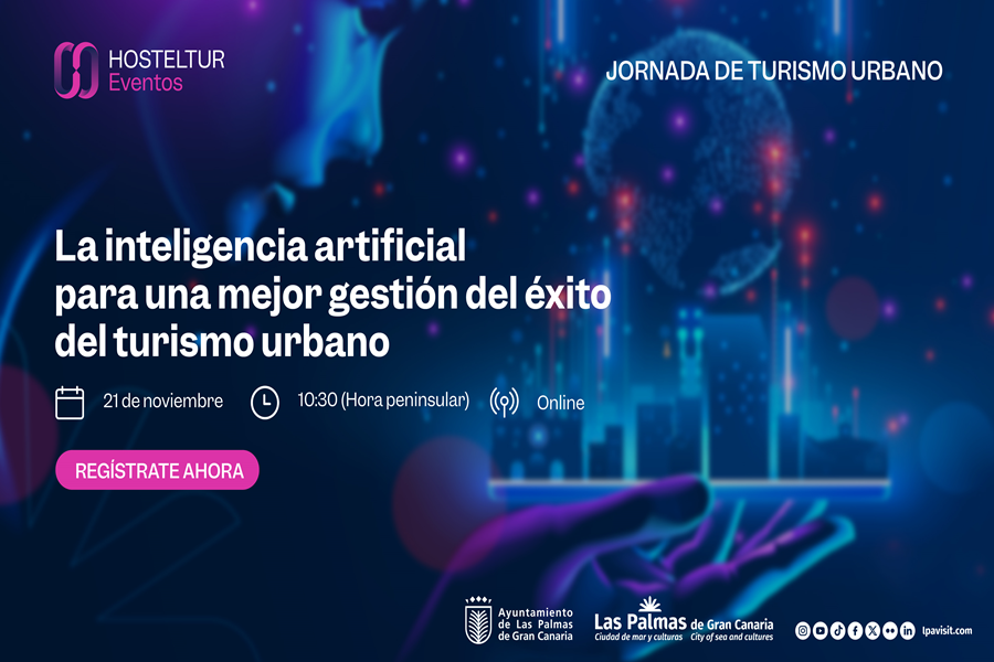 La inscripción para participar en este encuentro online el próximo 21 de noviembre se puede realizar a través de Hosteltur. Expertos nacionales en el sector turístico y en inteligencia artificial compartirán experiencias y debatirán sobre su uso para lograr una mejor gestión del éxito del turismo en las ciudades.