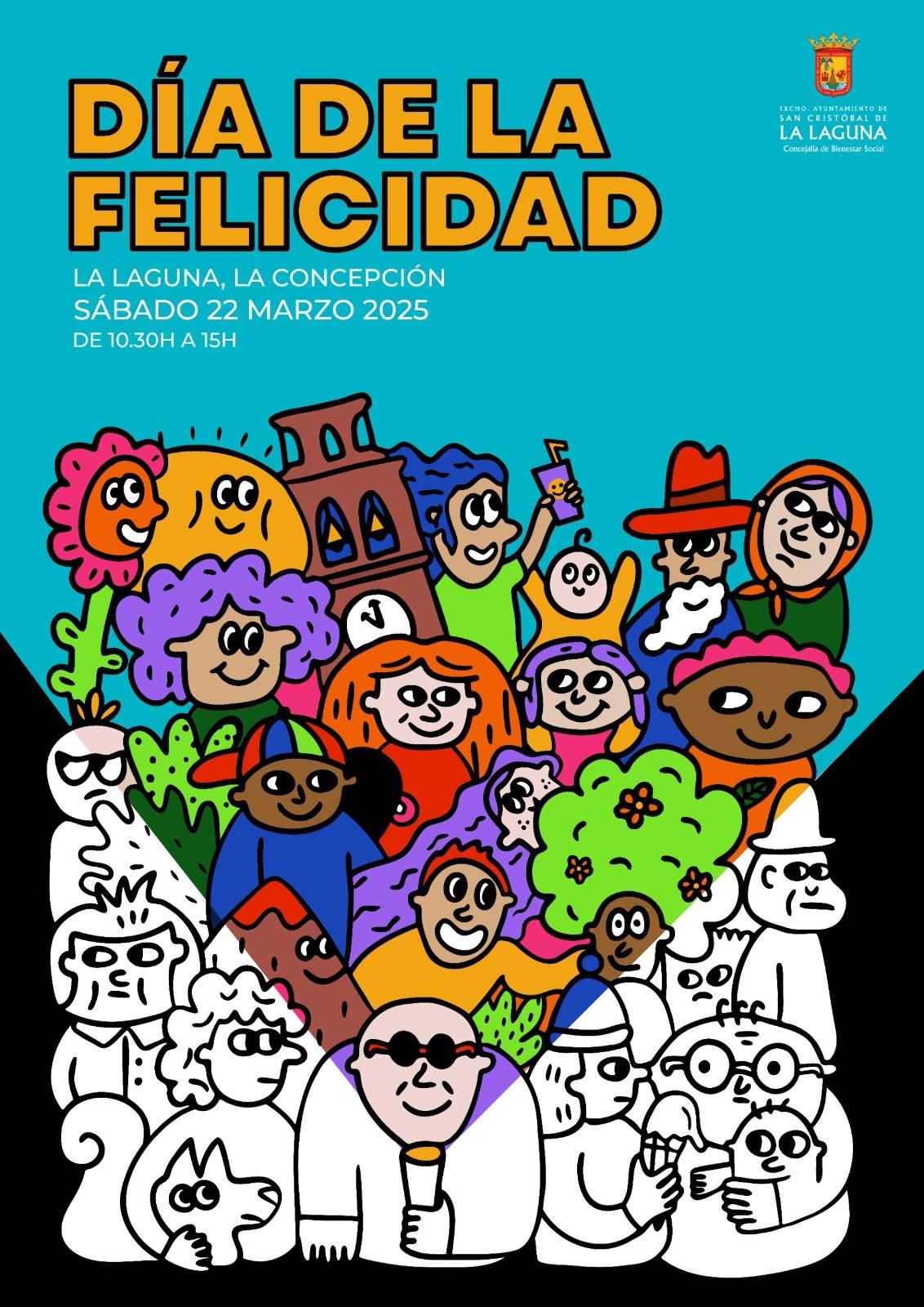 La concejalía de Bienestar Social y Calidad de Vida del Ayuntamiento de La Laguna ha preparado un evento especial con motivo del Día de la Felicidad, que se llevará a cabo el próximo sábado, 22 de marzo. La actividad se desarrollará en la plaza de La Concepción, en un horario de 10:30 a 15:00 horas, y ofrece una variedad de propuestas para todas las edades.
