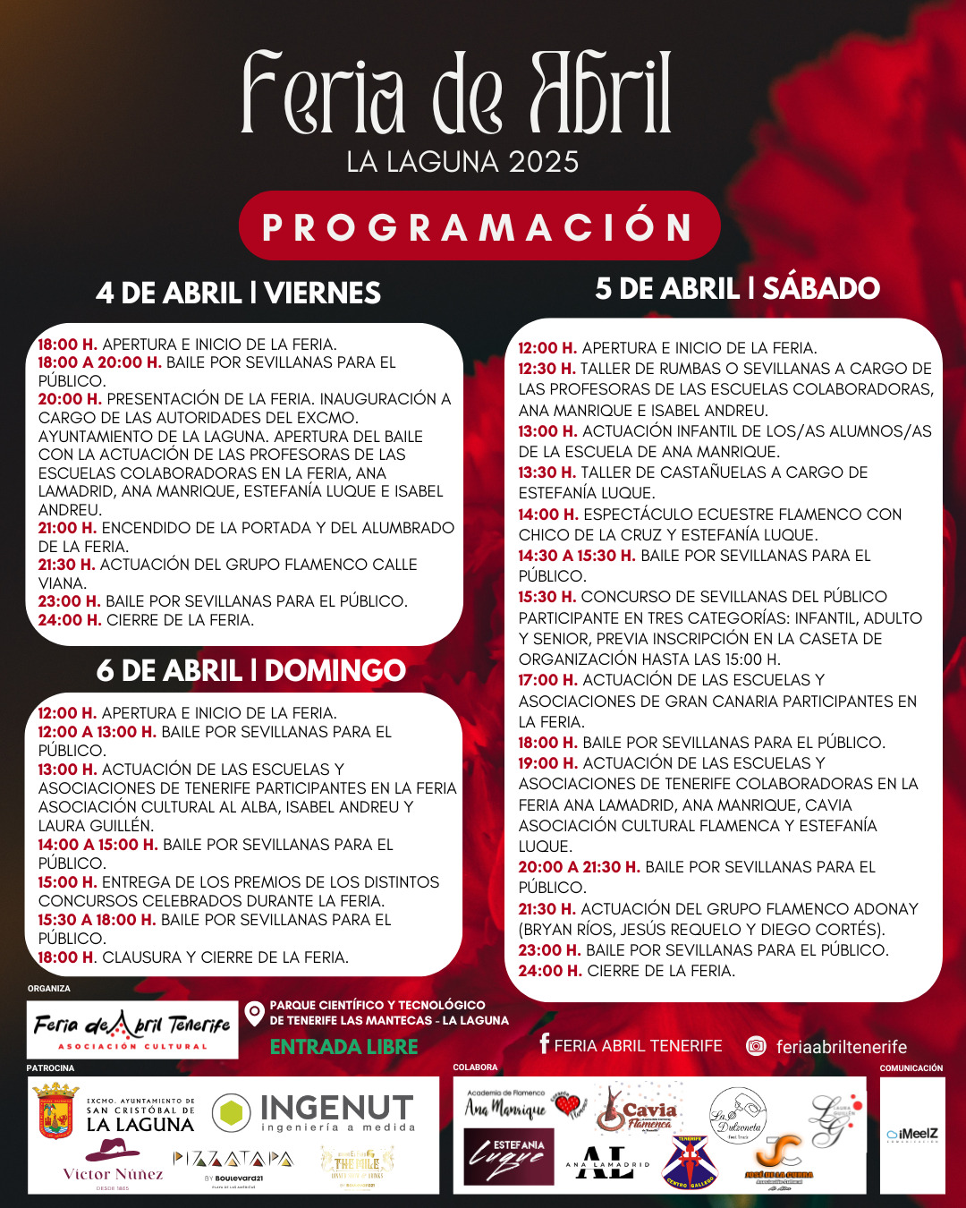 El entorno de Las Mantecas en La Laguna fue escenario este viernes de la inauguración de la Feria de Abril, un evento que se distingue por su entrada gratuita y que, en su tercera edición, busca consolidarse como un punto de atracción en el calendario de ocio del municipio. La feria es conocida por su extensa oferta gastronómica y musical, centrada en la cultura andaluza.