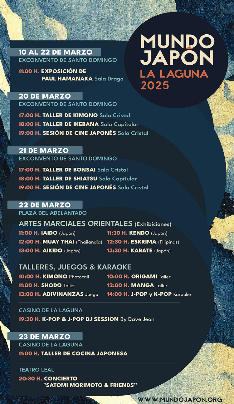 El 22 de marzo, a partir de las 10:00 horas, la plaza del Adelantado albergará una exhibición de artes marciales que incluirá iaido, muay thai, aikido, kendo, esgrima y karate, además de distintos talleres, juegos y karaoke. Esa misma tarde, el Casino de La Laguna acogerá una sesión de música K-pop y J-pop dirigida por Dave Jean.