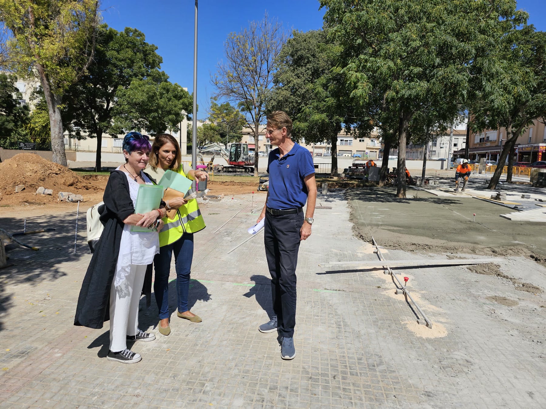 La teniente de alcalde de Infraestructures y Accessibilitat, Belén Soto, el coordinador del área, Joan Josep Lemm, y la presidenta de la Asociación de Vecinos Son Llull-Son Serra-Sa Vileta, Jerónima Palmer, han visitado las obras de rehabilitación de la plaza Tarent que tienen un presupuesto de 202.198 euros y un periodo de ejecución de ocho semanas.